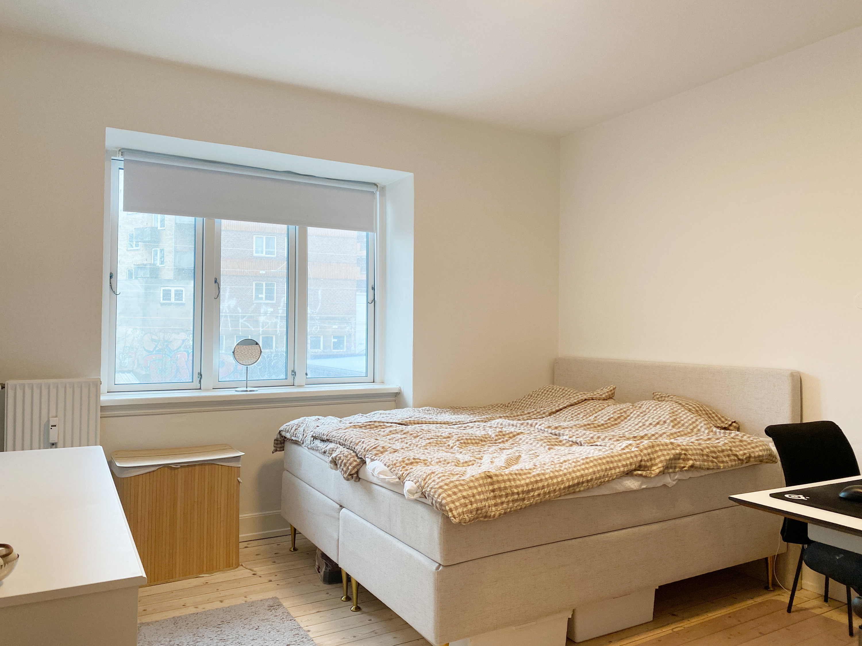- Rummeligt soveværelse med plads til opbevaring og soveplads